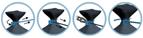 Для облегчения прокалывания мешка конец гибкого элемента пломбы заострен. Это